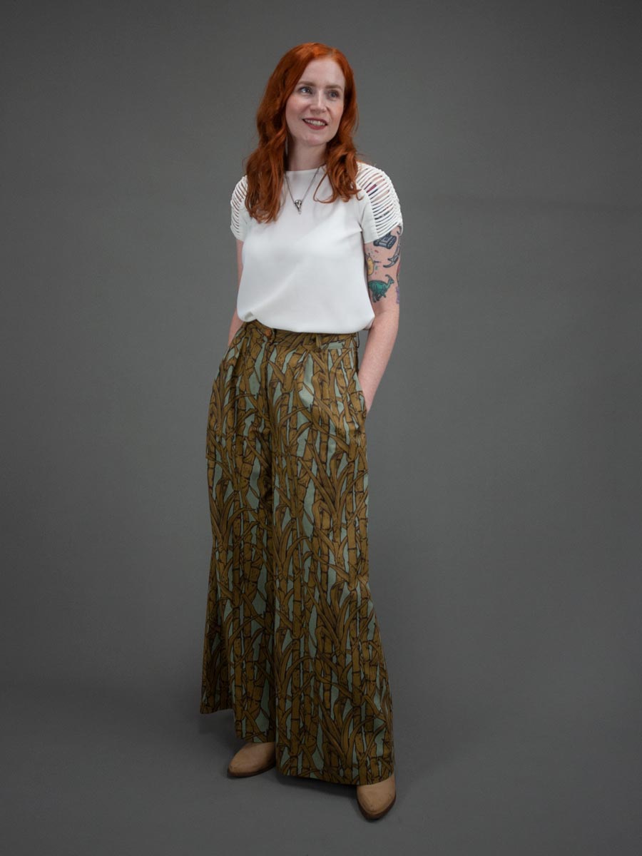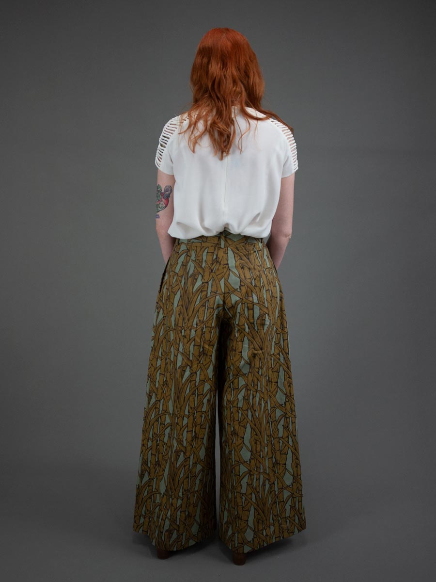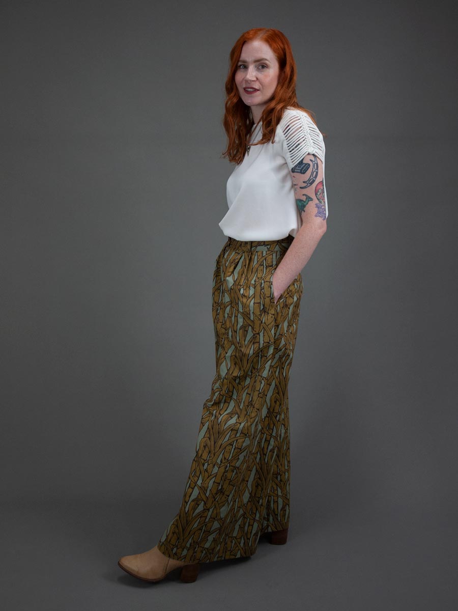 These wide legged pants are the most fun pants to wear. Inspired by 1940’s stars Lauren Bacall, Katherine Hepburn, and Marlene Dietrich, they have a chic flow to them and are so comfortable. Balance out the wide leg silhouette with a simple fit and flare top or play with a more dramatic silhouette by pairing them with a voluminous blouse for a Lauren Bacall look.