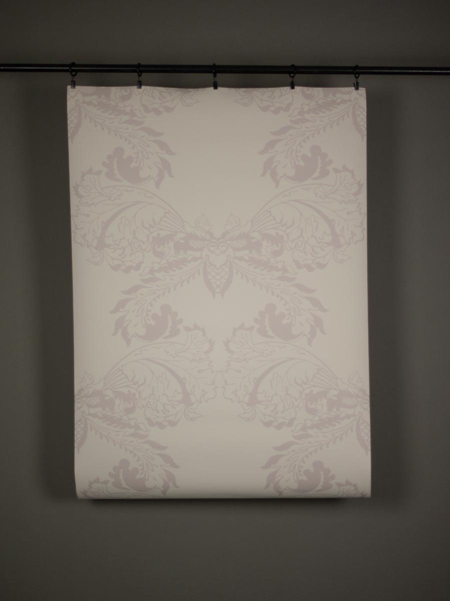This stunning Art Nouveau style wallpaper print was designed in house by Mark Cawood. Delicate lace like patterns form the bodies and wings of these gossamer moths, invoking a sense of soft flowing movement. Printed in soft mauve and warm white as part of the C.M.G loves Publisher range, collaboration between Claire Granville and Publisher.