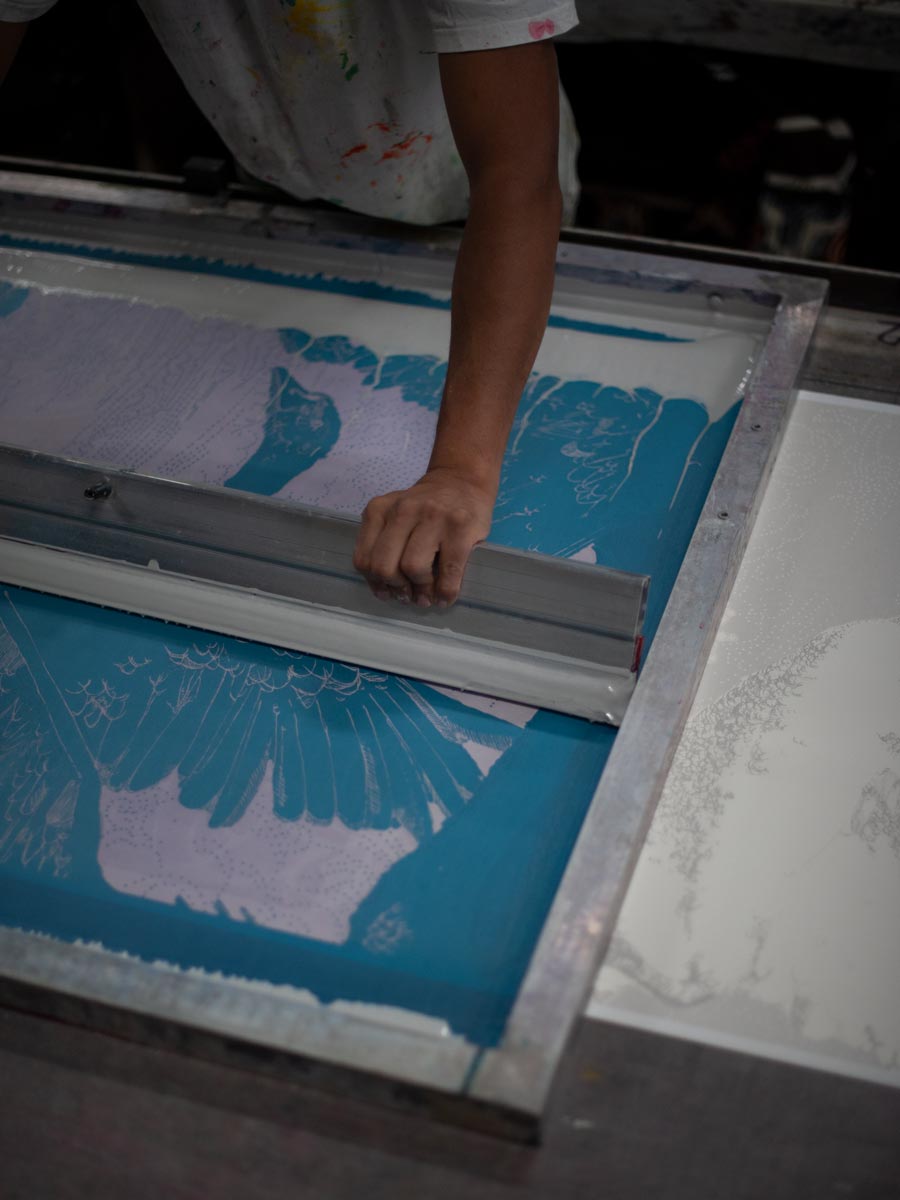 Our papers are handprinted to order using water-based, environmentally safe inks on a PVC-free, FSC-certified non-woven base. Each roll is hand trimmed and supplied ready to be hung.
