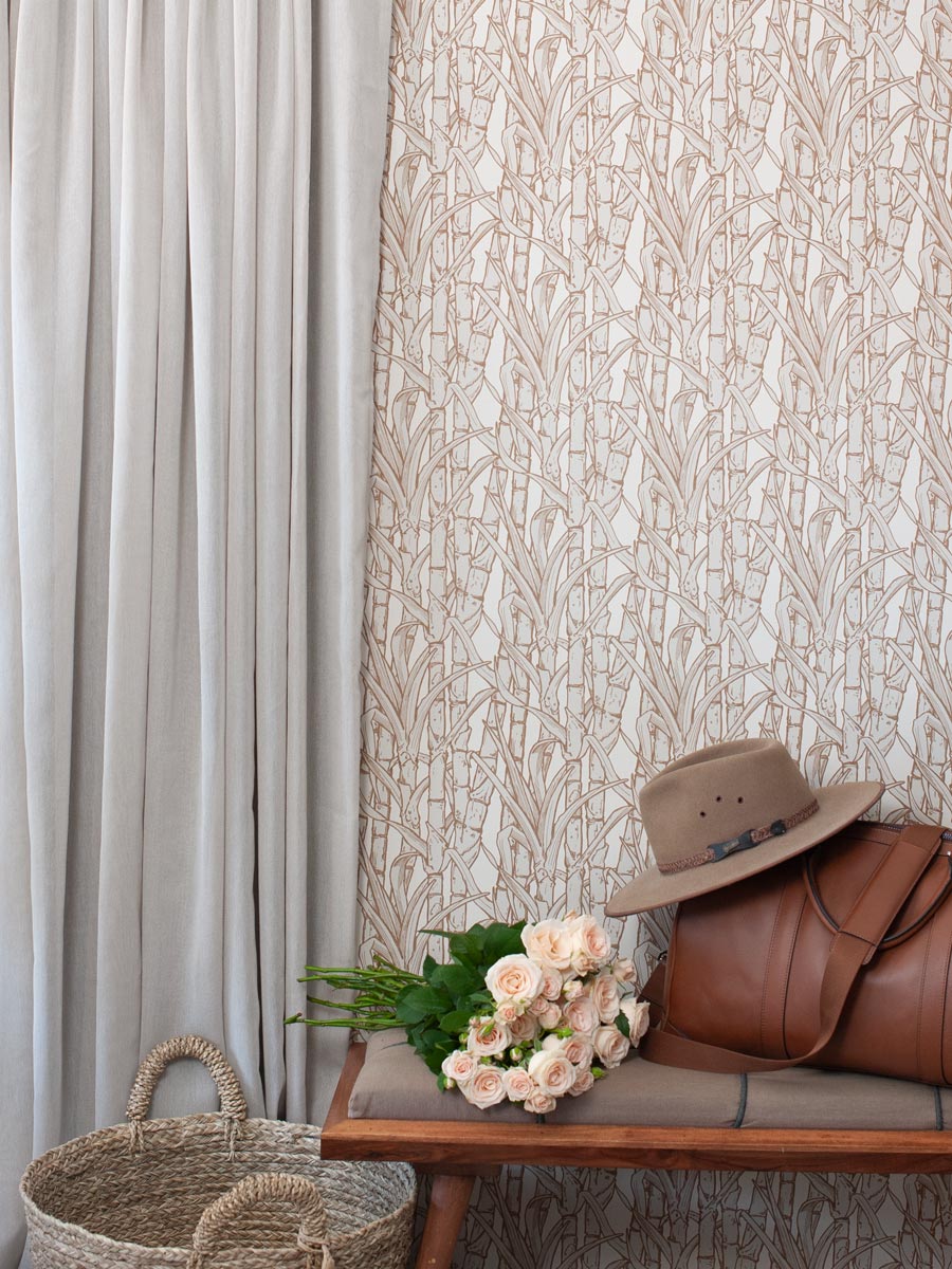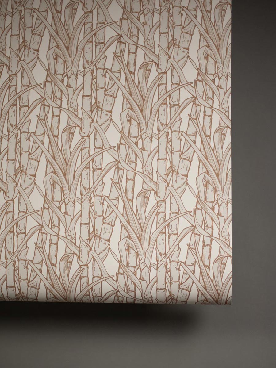 This stylised sugar cane wallpaper takes its name from the disreputable crew of brigands who committed the infamous NSW Rum Rebellion of 1808. Printed in soft warm greys and whites as part of the C.M.G loves Publisher range, collaboration between Claire Granville and Publisher.