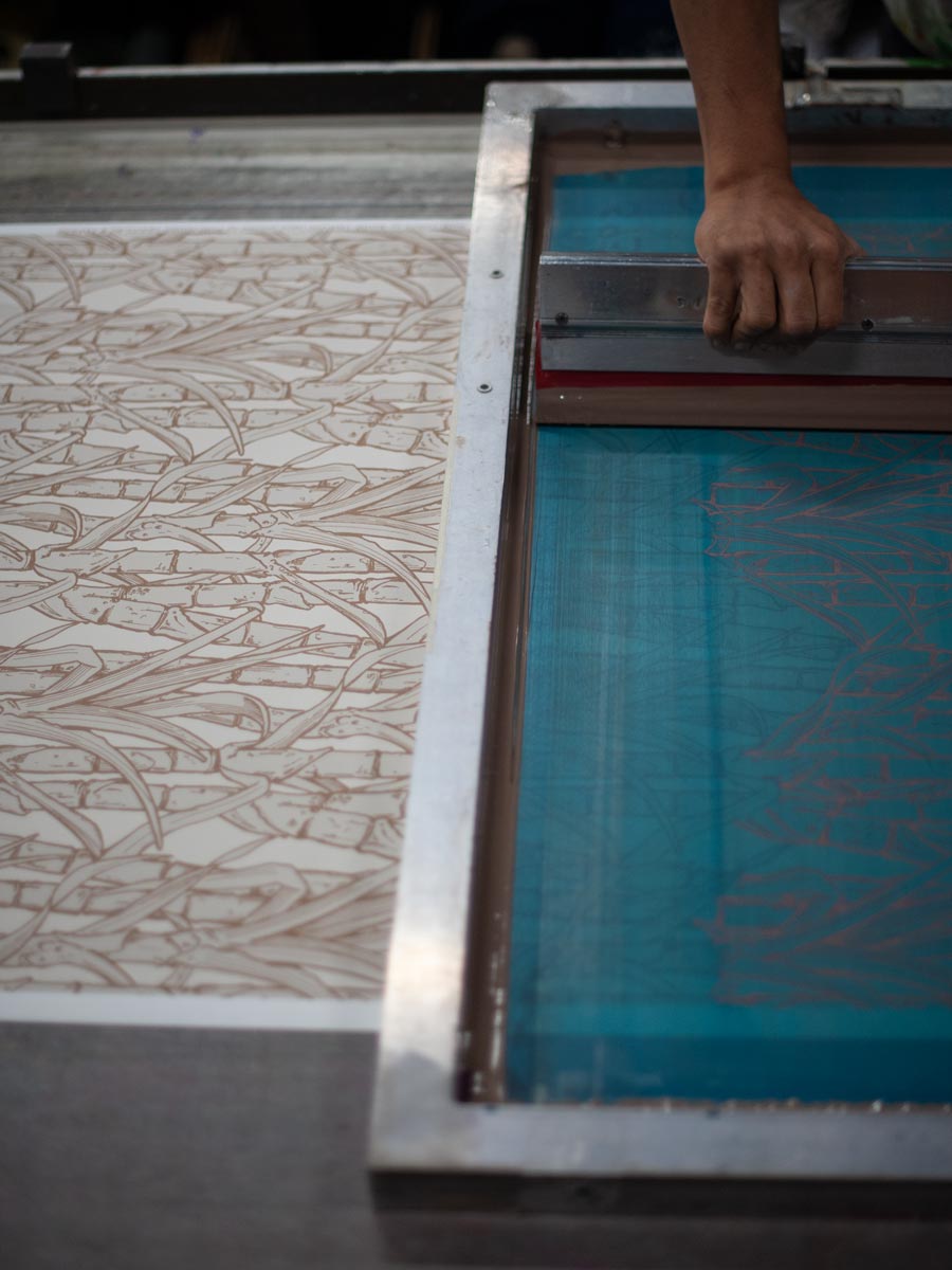 Our papers are handprinted to order using water-based, environmentally safe inks on a PVC-free, FSC-certified non-woven base. Each roll is hand trimmed and supplied ready to be hung.