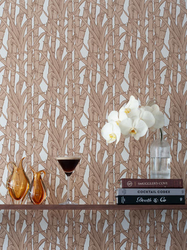 This stylised sugar cane wallpaper takes its name from the disreputable crew of brigands who committed the infamous NSW Rum Rebellion of 1808. Printed in warm autumnal tones as part of the C.M.G loves Publisher range, collaboration between Claire Granville and Publisher.