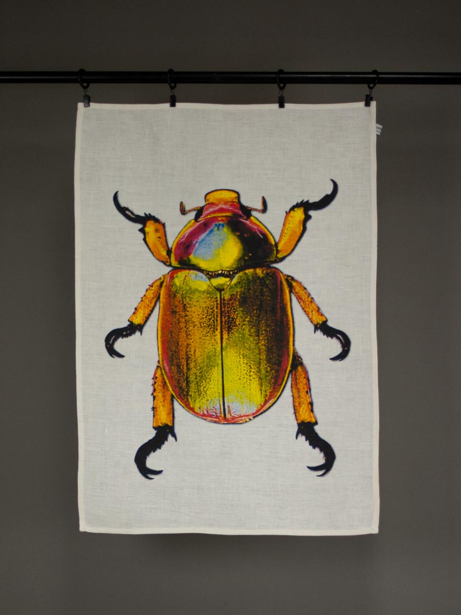 Featuring our Christmas Beetle design, this 50% linen 50% cotton tea towel is hand printed in-house in our Leichhardt studio.