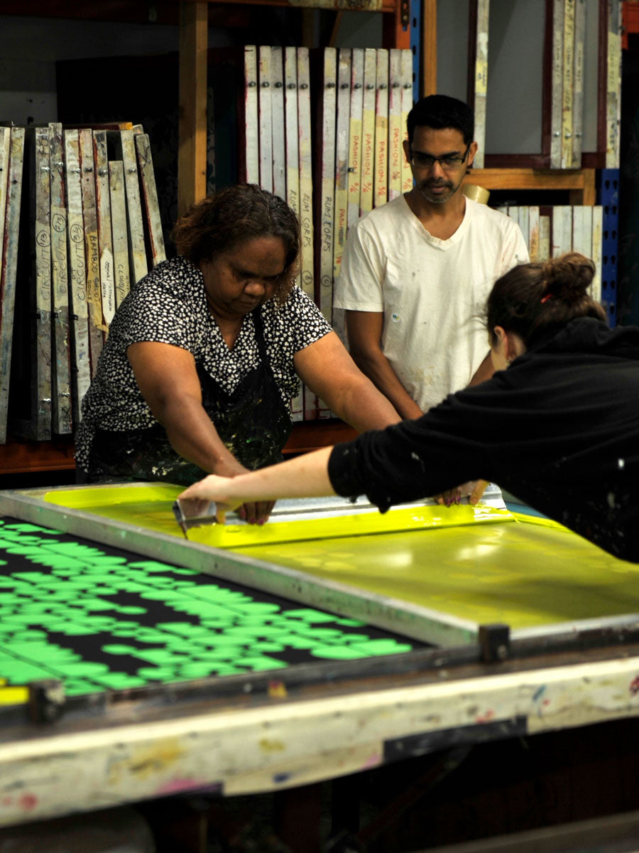 All our fabrics are hand printed by us in our Leichhardt studio using our specially formulated water-based inks on to natural fabrics.
