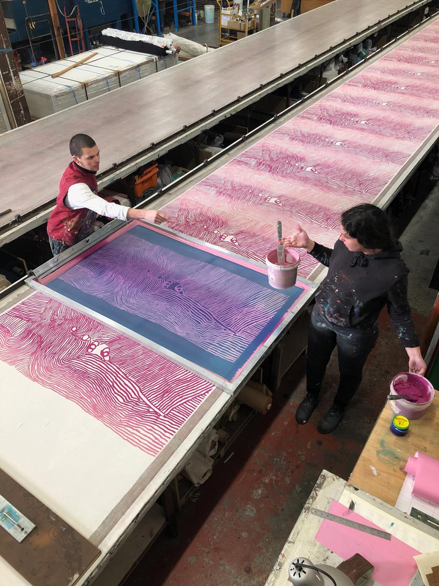 All our fabrics are hand printed by us in our Leichhardt studio using our specially formulated water-based inks on to natural fabrics.