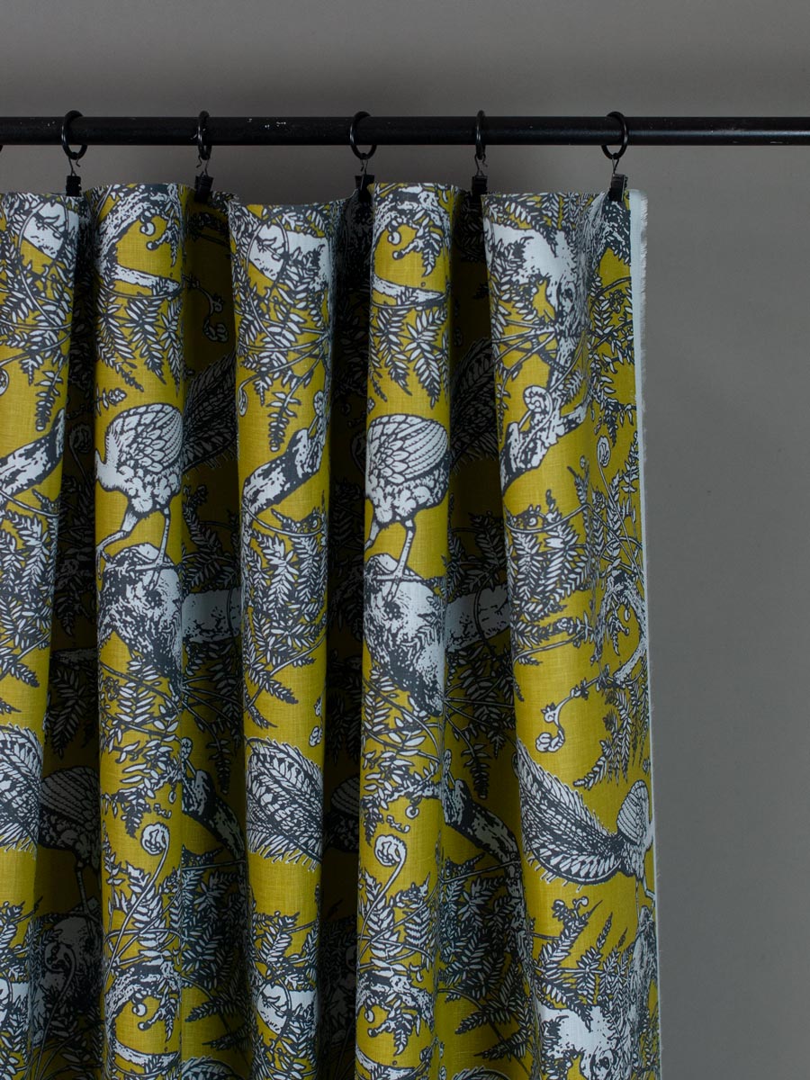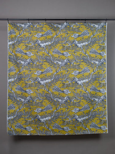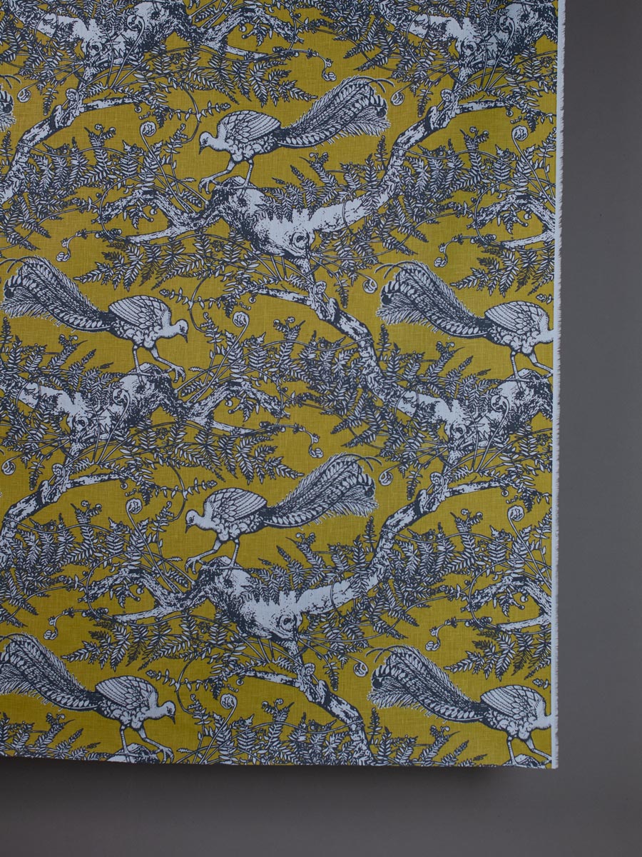 Lyrebird - Chartreuse on Cornflower Linen