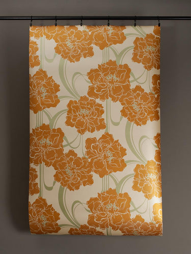 This Art Nouveau botanical print was designed in house by Mark Cawood. It features bold stylised carnations linked by soft flowing ribbons.