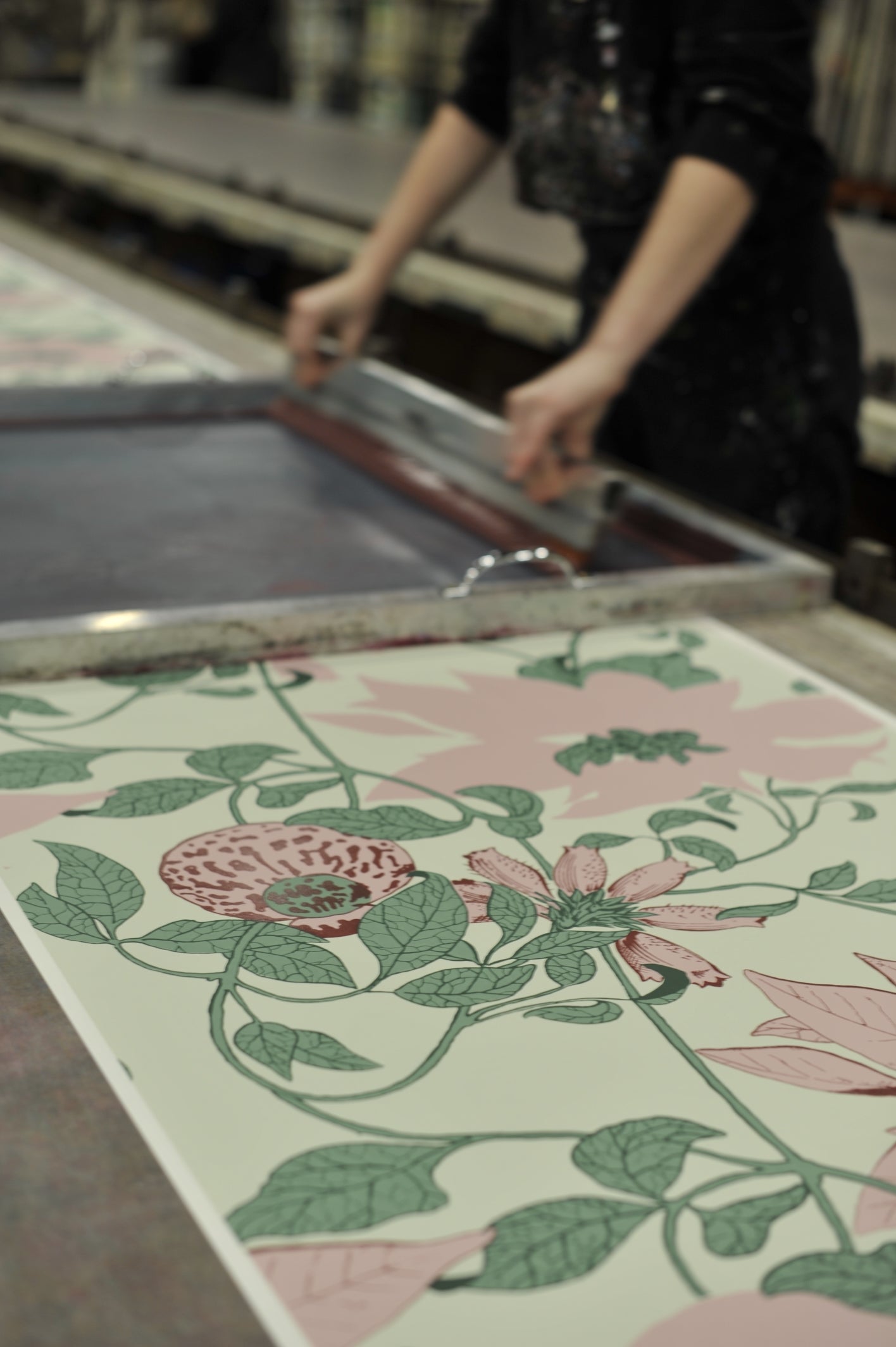Our papers are handprinted to order using water-based, environmentally safe inks on a PVC-free, FSC-certified non-woven base. Each roll is hand trimmed and supplied ready to be hung.