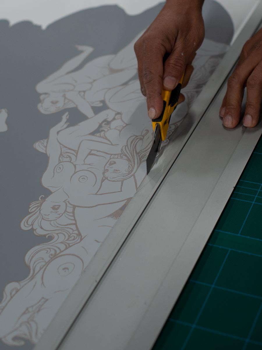 Our papers are handprinted to order using water-based, environmentally safe inks on a PVC-free, FSC-certified non-woven base. Each roll is hand trimmed and supplied ready to be hung.